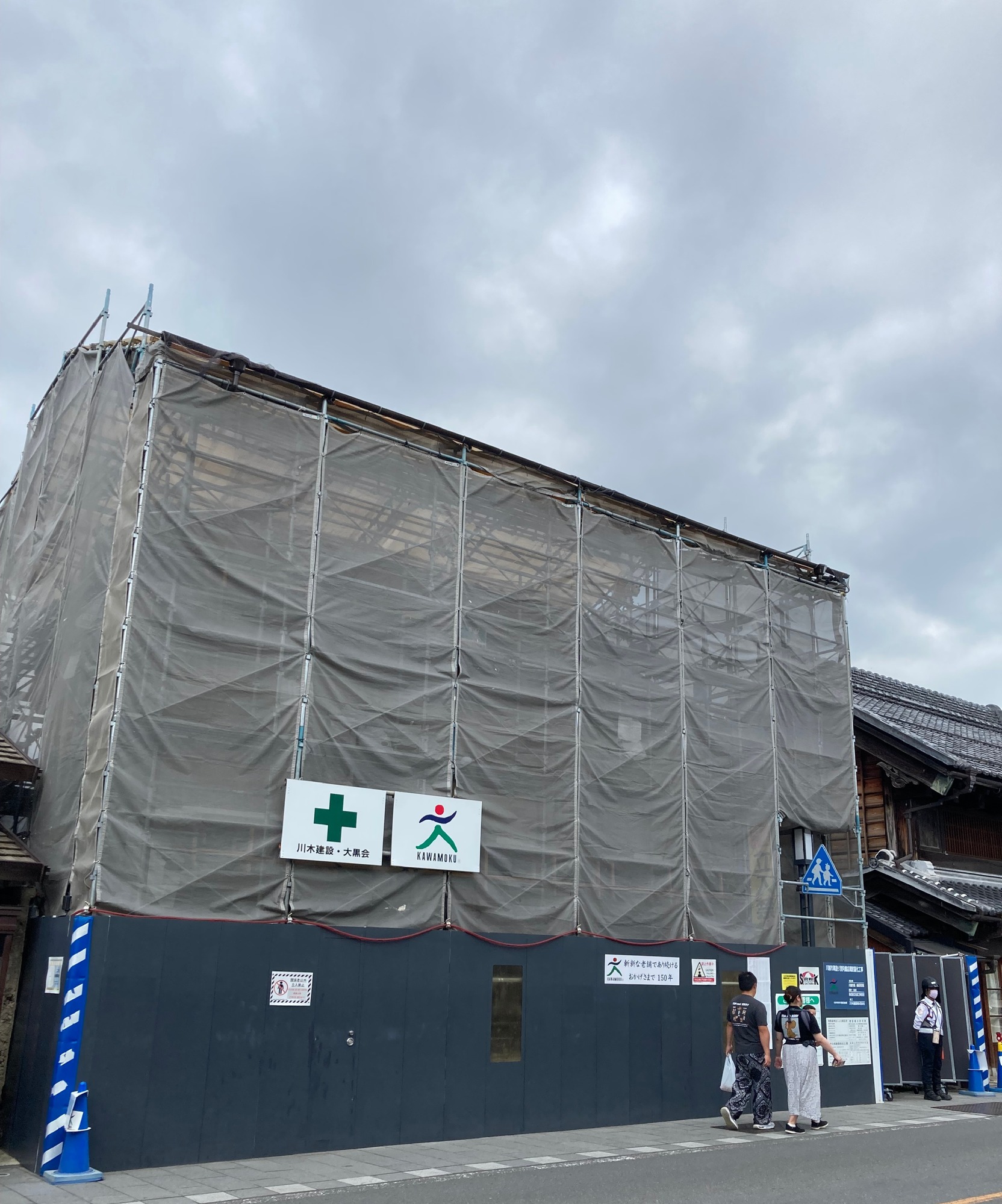 長谷さんのこと到着してみると、蔵造り資料館は素屋根ですっぽりと覆われていました。実は令和5年度から令和8年度まで耐震化工事が行われており、長谷さんはその工事を担当しているのです。