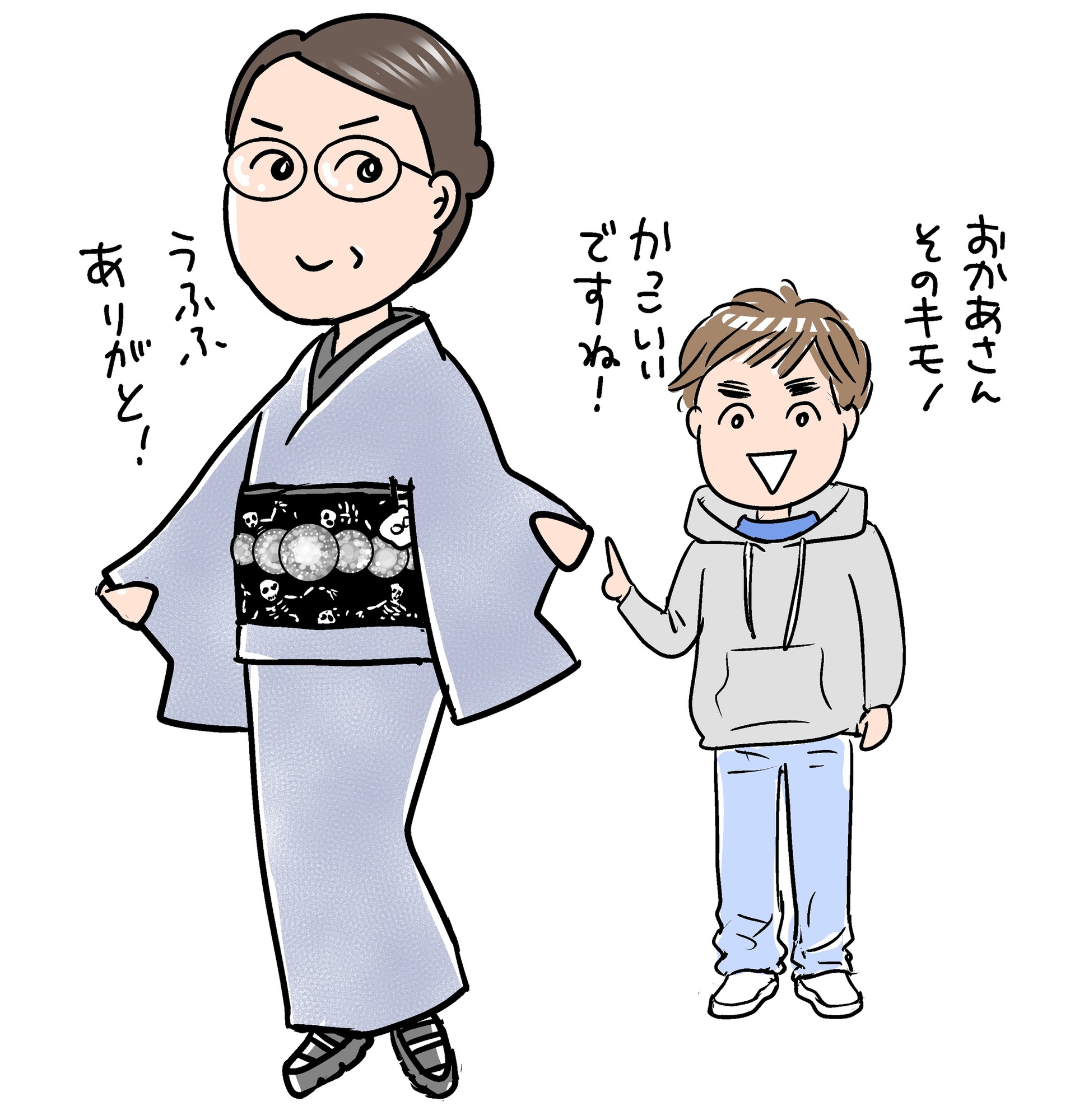 私自身の体験談ですが、50代半ばのころ「おかあさん」と呼ばれたことがありました。デザインフェスタで絵や小物を売っていた時の話です。大学生くらいの若いお客さんが私を見て「おかあさん、その着物、かっこいいですね」と言ってくれたのです。