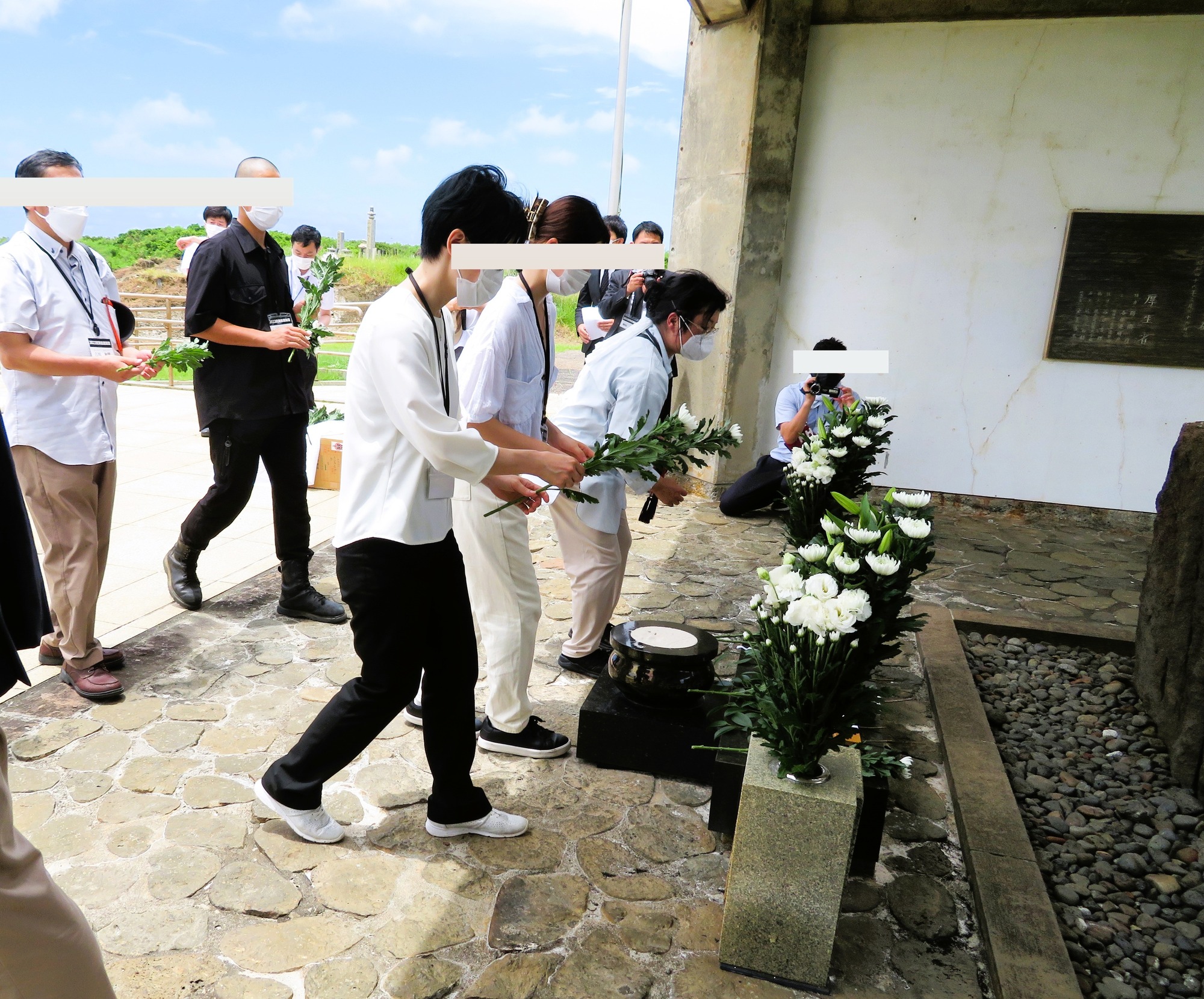 今日の慰霊祭では、北海道のミネラルウォーターとおまんじゅうをお供えしました。ちょうど家の近所で売っていたものですから。おまんじゅうをお供えしたのは、伯父たちが誰もお酒を飲めず、おそらく祖父も飲まなかっただろうと思ったからです。