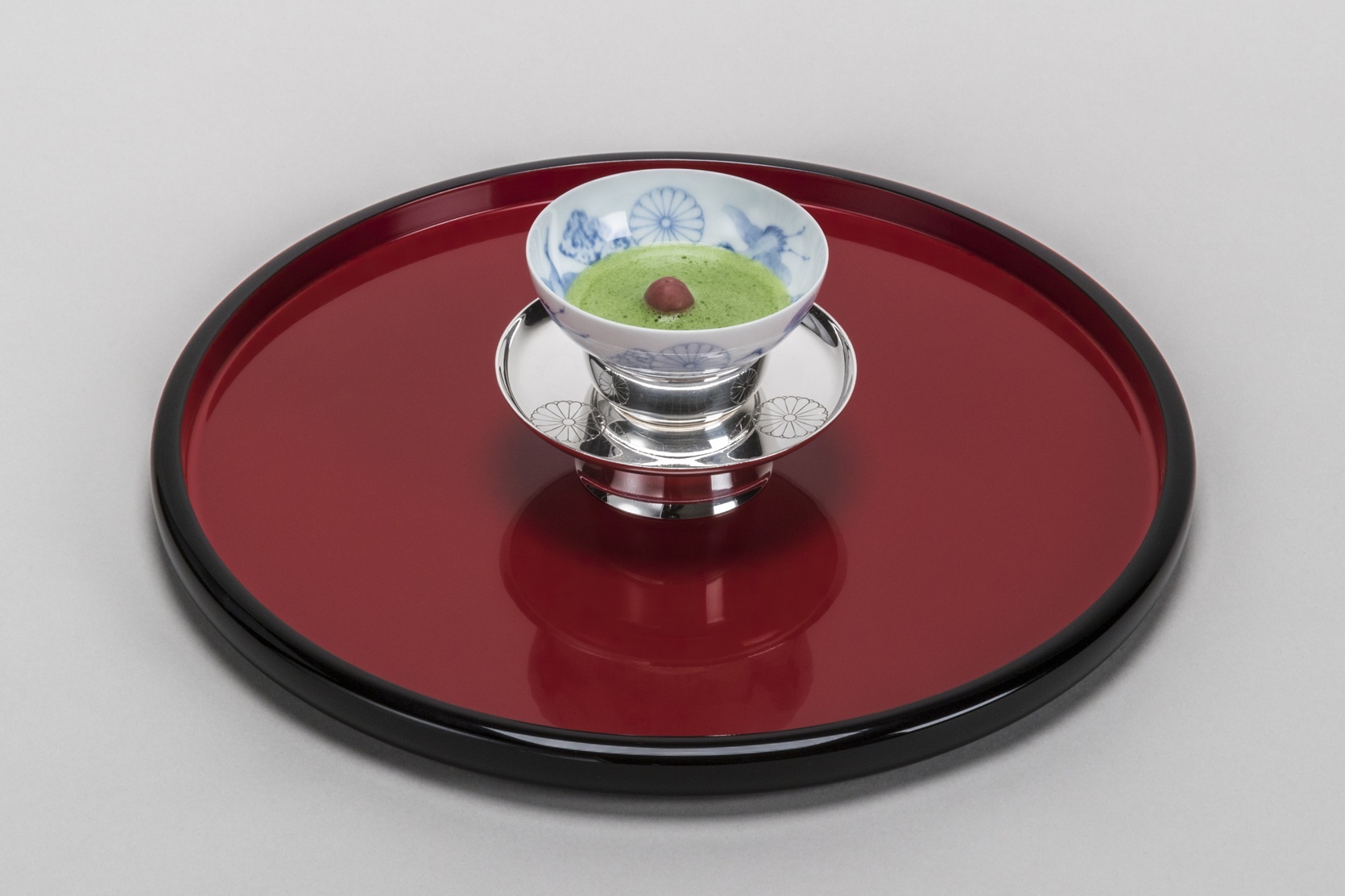 最初に菱葩と雉子酒が出されますが、これは儀式的なもので、両陛下は召し上がるご所作をなさいます。この作法を「おまね」といいます。その後、実際のお食事として再び菱葩と雉子酒が出され、お食事の後にお福茶を召し上がります。