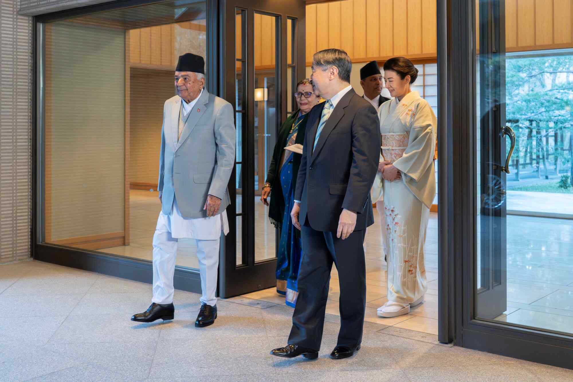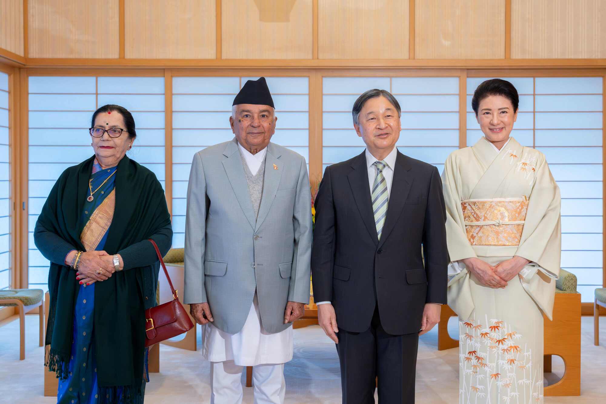 令和8年2月3日、天皇・皇后両陛下がネパールのポーデル大統領夫妻を皇居・御所に招き、お会いになりました。
