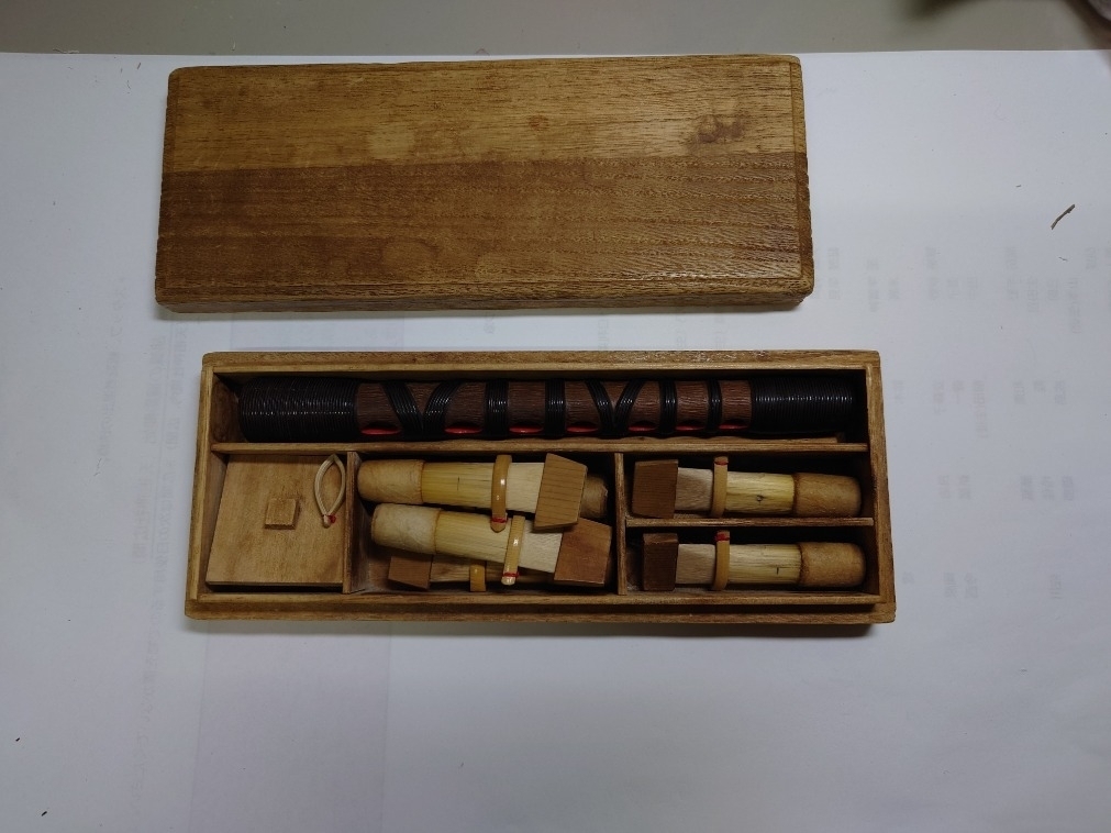 新屋さんのご自分用のリードの箱を見せてもらうと、白っぽい色から茶色まで、さまざまな色をしたたくさんのリードが入っていました。この中から曲に合わせたリードを選んで演奏会で使うわけですね。