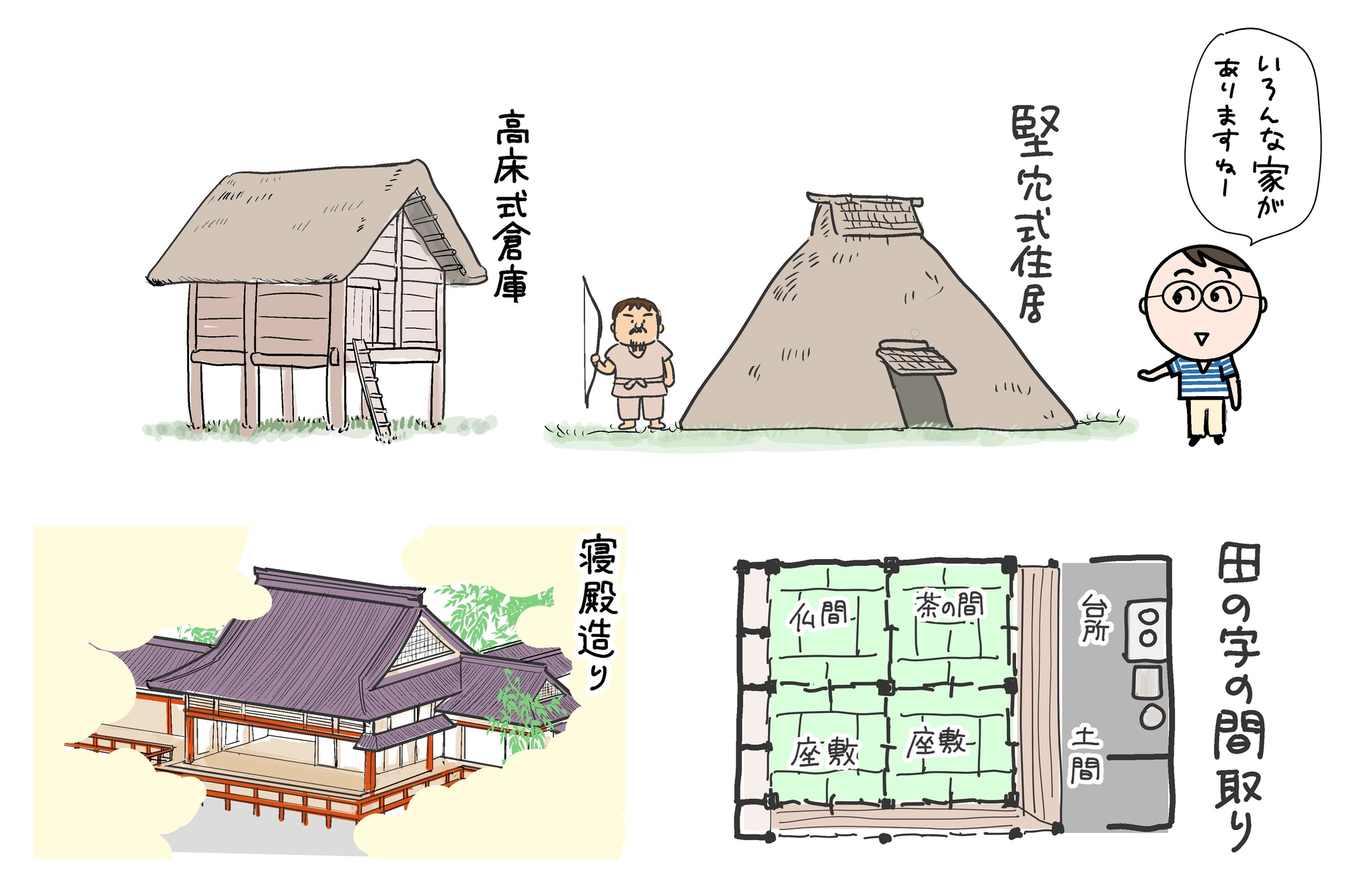 AIに聞いてみると、古代の日本の家は竪穴住居、高床式倉庫、平地住居と、今とは全く違う作りでした。
