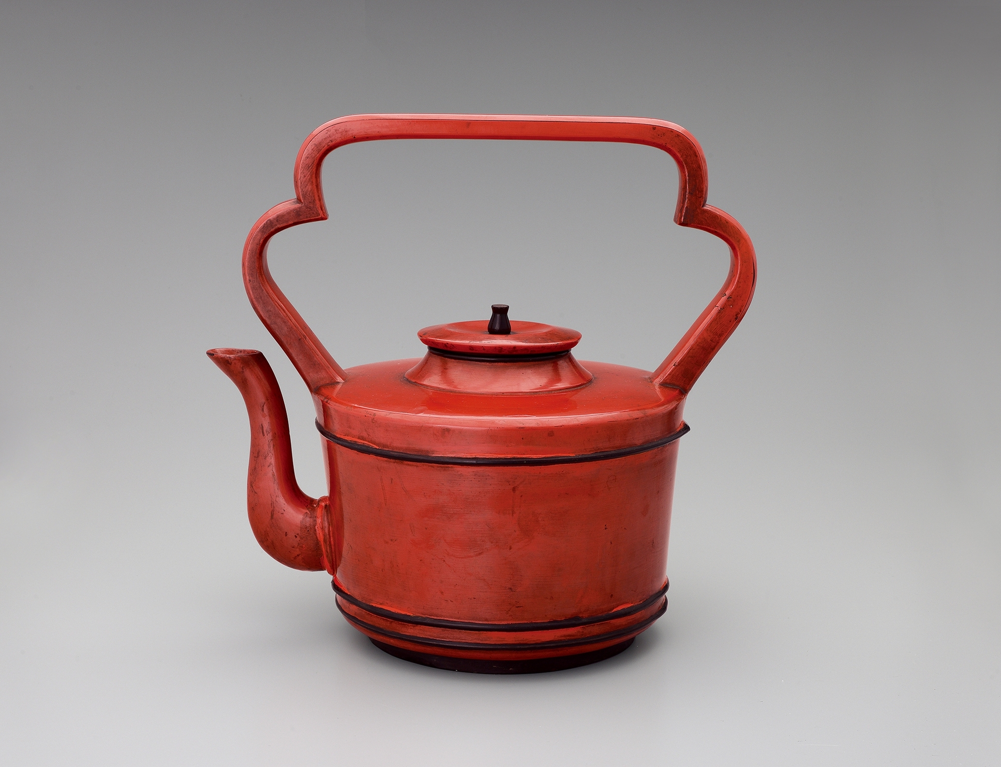 こちらはサントリー美術館所蔵の「湯桶(ゆとう)」です。湯桶は湯を入れて注ぐための器で、祭礼や祝宴、寺院での食事や茶礼などにおいて、大勢の人に湯を注いで回るために作られました。元来は金属器だったものを木製漆塗として写したといいます。把手(とって)の形が非常にユニークです。この湯桶は12月15日までの展示です。