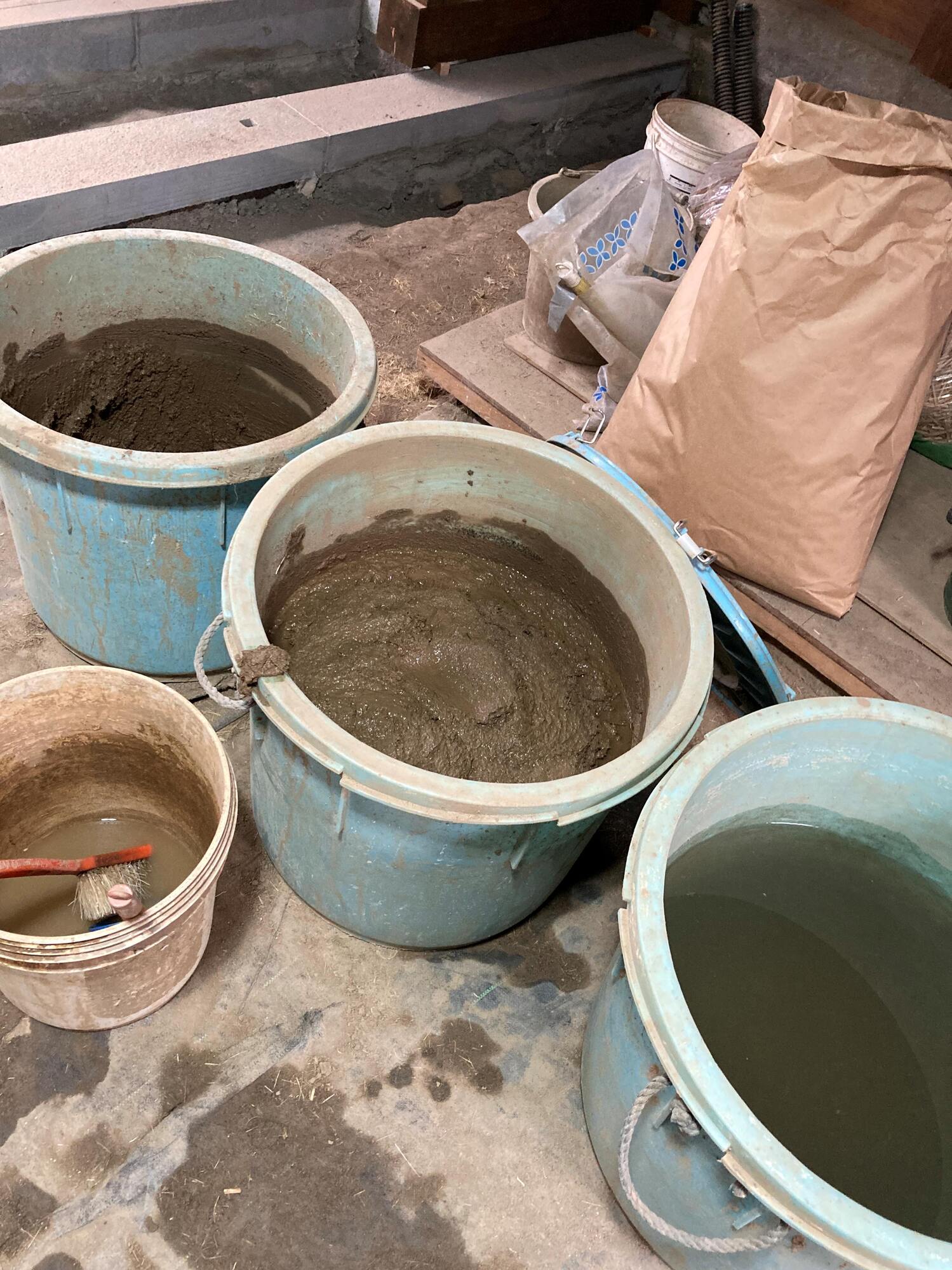 私が、この長谷さんの言葉を聞いて思い出したのは、先の動画です。左官が現場に入るのは、大工が基礎部分や柱、天井などの構造を組み直した後です。動画を見ると、左官が壁を造るまで、蔵は柱と天井があるだけ。柱と柱の間には板のような、下地となるようなものが何もなく、風が吹きわたる骨組みの状態でした。言ってみれば、蔵の壁は無の状態から左官が作っていたのです。