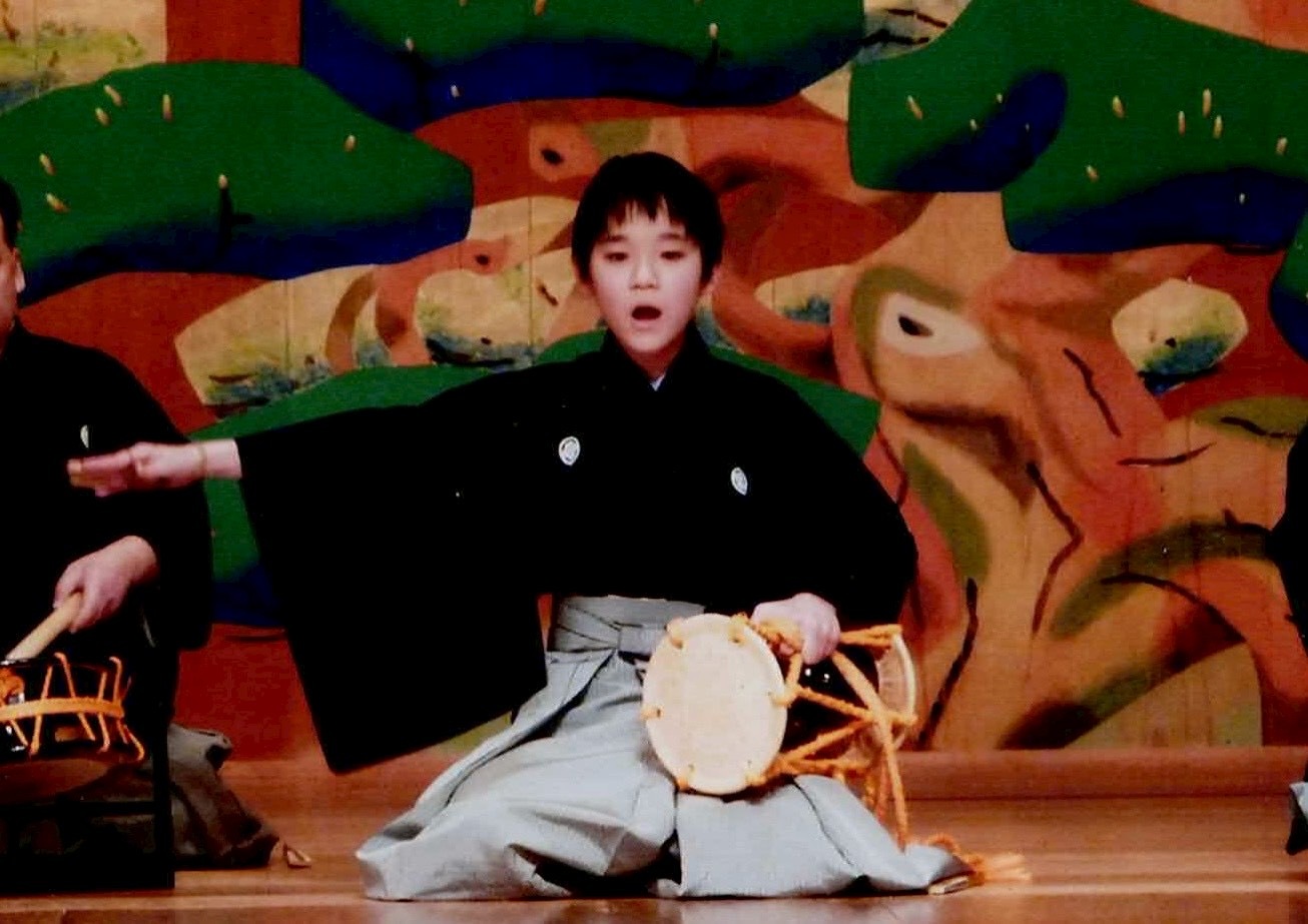 私が「能楽師」という将来の姿を意識し始めたのは、おそらく幼稚園のころだったと思います。記憶はあまり定かではありませんが、年長のとき、親も交えたお楽しみ会のような催しがあり、その中でステージに立ち「将来なりたいもの」を発表する場面がありました。