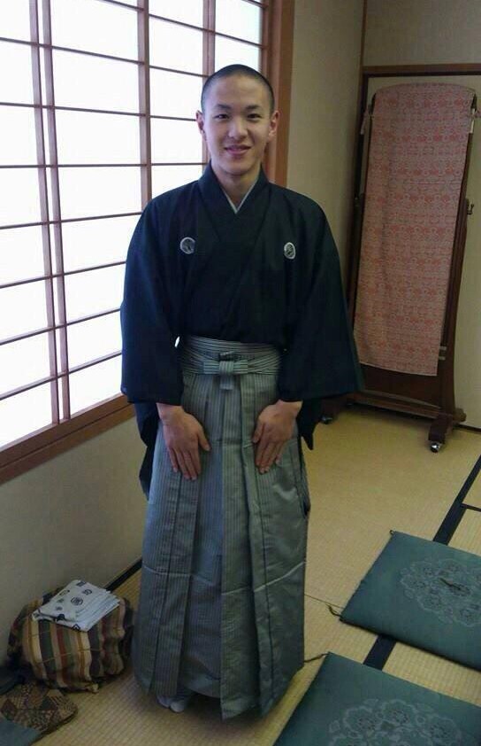 それぞれの楽屋では、能楽師たちが真剣な表情で身支度を始めている。大勢の知らないおじさんたちが「紋付(もんつき)の着物に袴」という同じコスチュームに着替えているのを前にして、頭の中で「このお人にはさっき挨拶しただろうか?」という問いがぐるぐる回る。僕の存在に気づいたおじさんたちは、心中で「どこの子?」「え、なんで坊主頭?」と思っていることだろう。なんせ先週までの僕は、丸刈りが伝統の空手部員だったのだ。