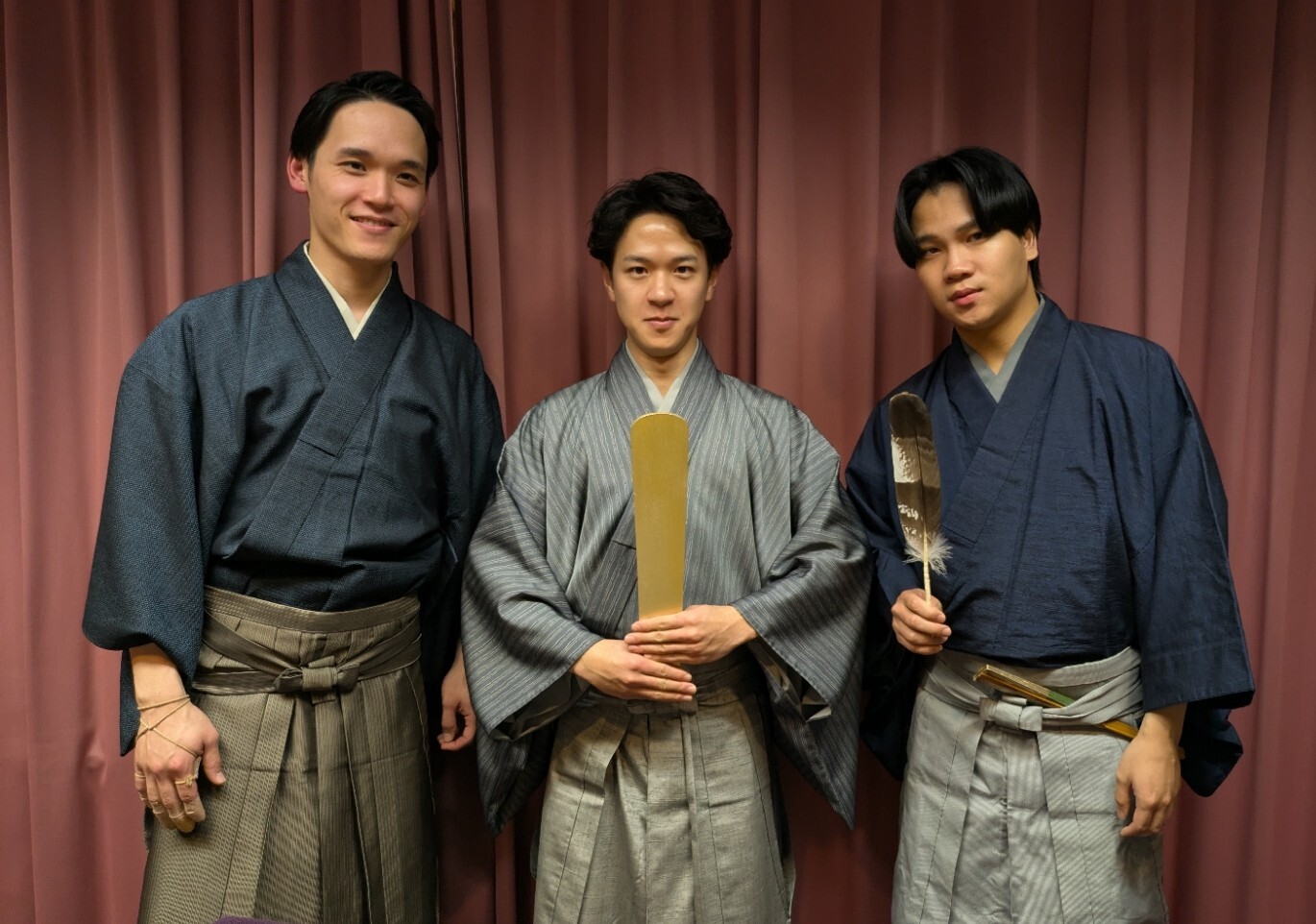 東京・大阪・京都で毎月開催、毎回お能の1つの曲(演目)を題材に、能楽師シテ方の大槻裕一(おおつき・ゆういち/写真右)、小鼓方の成田奏(なりた・そう/写真中)、大鼓方の河村凜太郎(かわむら・りんたろう/写真左)が、若いエネルギーとみなぎる情熱、関西ノリの話芸とキレのある技で、たっぷり解説。オモシロ企画満載のインスタグラムも必見。