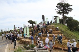 森宮司は開会式の挨拶で「百年、二百年先に残る森をつくり、亡くなった方々の御霊が憩える場所にしていただきたい。みなさんの心を苗木1本1本にこめて、心の森にしてほしい」と語りました。